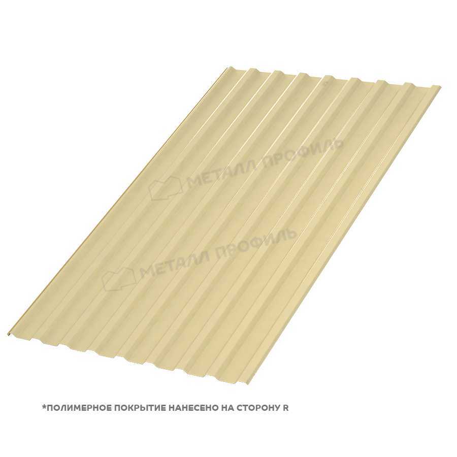 Профлист МП-20 с толщиной 0.35 мм или менее, покрытый полиэстером в оттенке RAL 1014 (слоновая кость) на стороне A, представляет собой универсальный строительный материал от компании Металл Профиль. Он идеально подходит для создания заборов, кровельных покрытий и фасадов, сочетая прочность, эстетику и доступную цену. Этот профилированный лист обеспечивает долговечность и защиту от внешних факторов, благодаря качественному покрытию и оптимальной форме профиля.